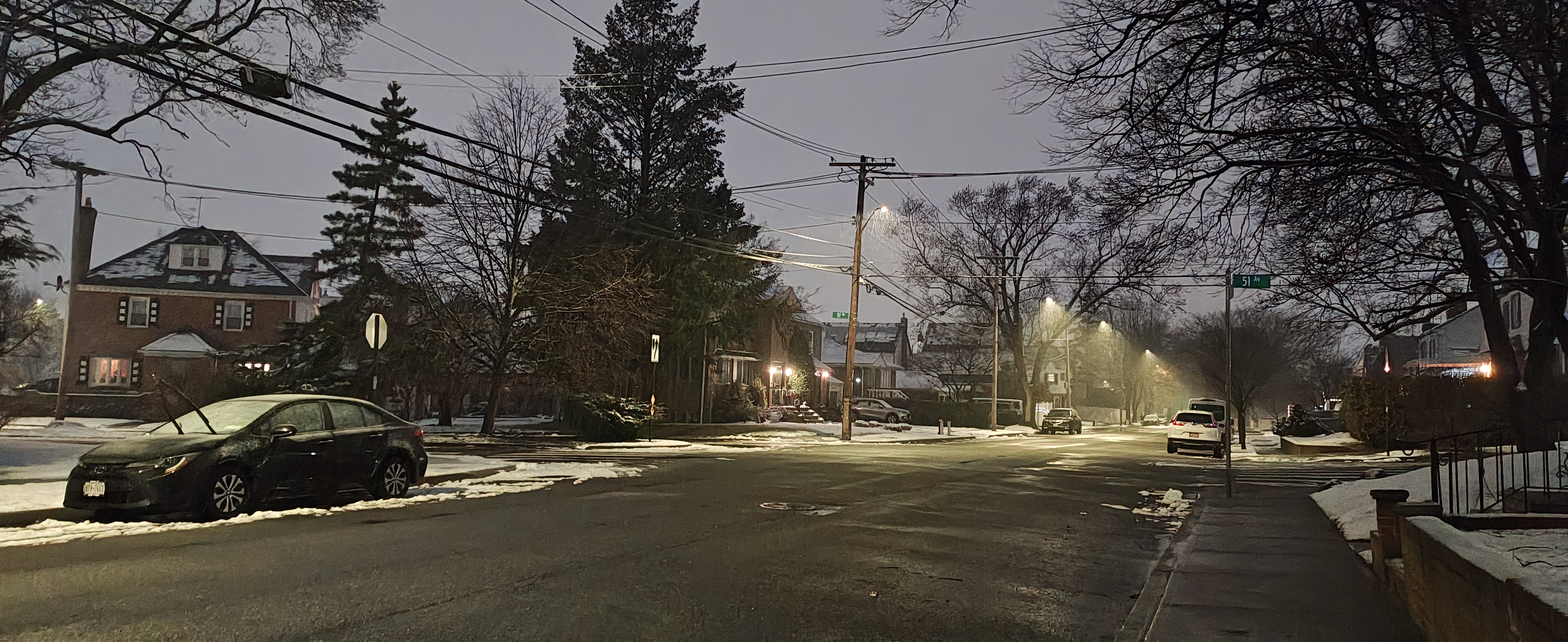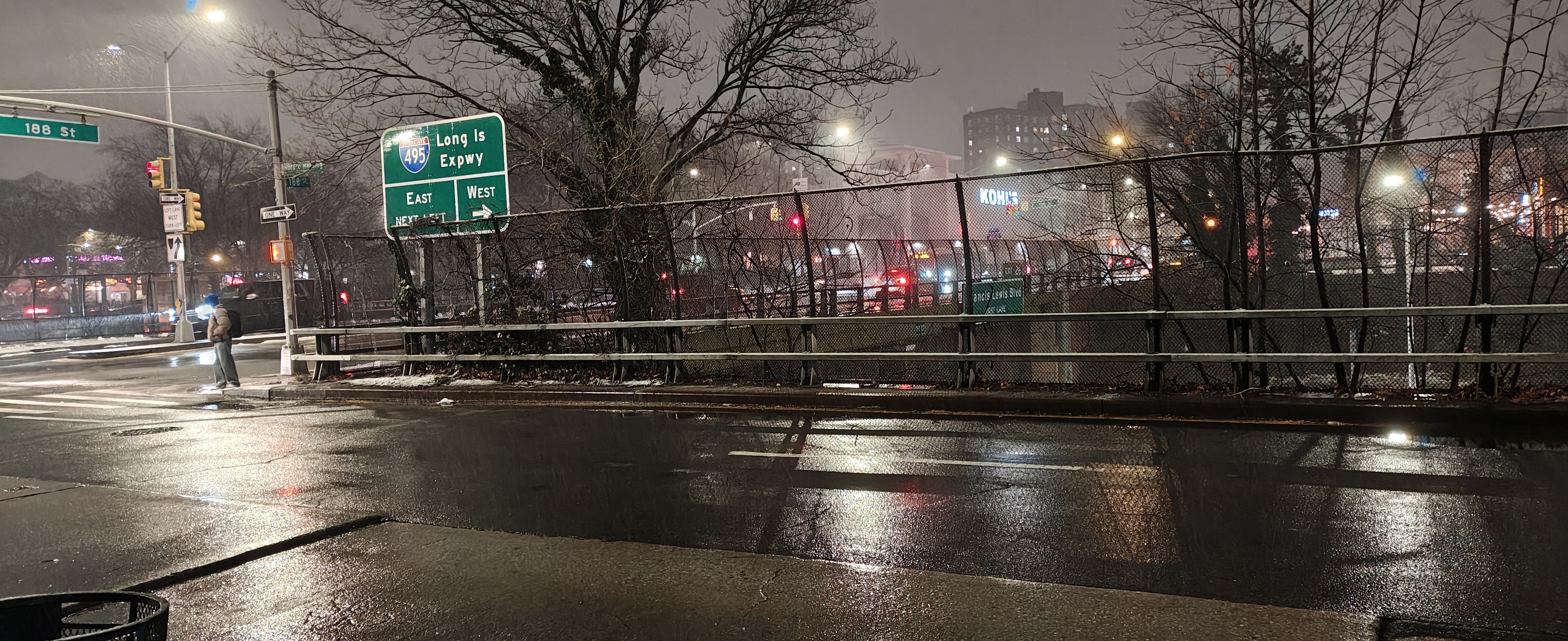 问题在于,这时候天已经开始黑了,我走完半马就已经开始身体不适,继续往东走只怕会愈来愈难回家,更何况雪依旧在下着。室友明显看着很不开心,但为了我的状况,最后决定一起走到牙买加区的 F 号线最后一站,然后坐 F 号线回家。