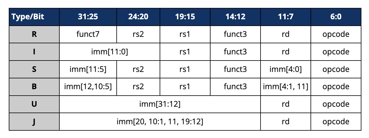 | 指令 | 名称 | 类型 | 操作码 | funct3 |