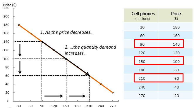 需求表(Demand schedule):描述了在不同价格下,消费者愿意购买的商品数量。