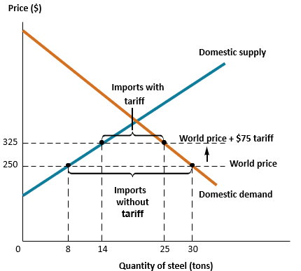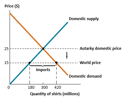 - imports make up the difference between domestic supply and demand, eliminating the shortage