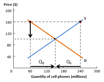 假设价格高于均衡价格,那么就会发生供给过剩(Surplus);假设价格低于均衡价格,那么就会发生需求不足(Shortage)。