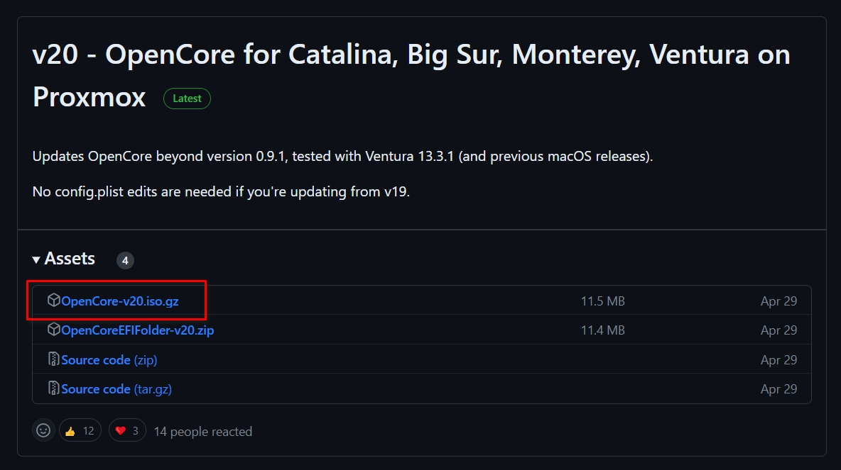 直接进到 Release 并下载 OpenCore-v20.iso.gz(最新版本)。