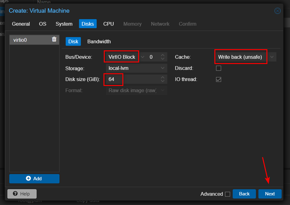- 在 Bus / Device 一栏选择 VirtIO Block