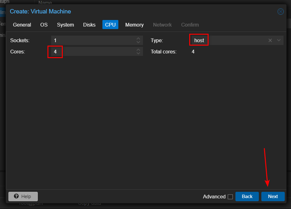 - 在 Cores 一栏根据你自己的配置输入核的数量(我输入了 4)