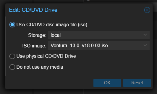 使用和 MacOS ISO 文件一样的方法将其上传到 Proxmox VE。