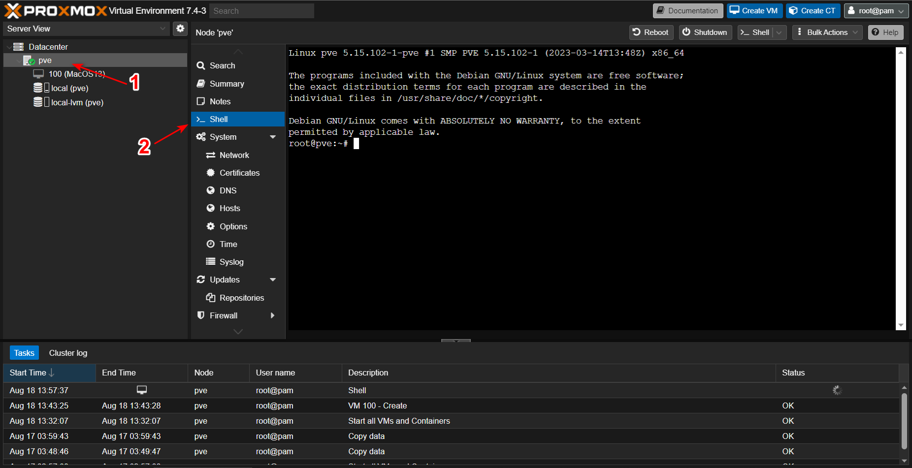 点击左侧的节点 > Shell。